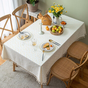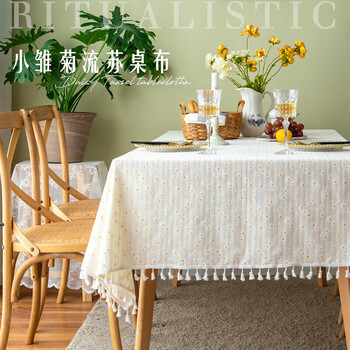 艾薇棉麻桌布布艺餐桌布茶几台布书桌长方形餐桌垫140*180黄色小雏菊