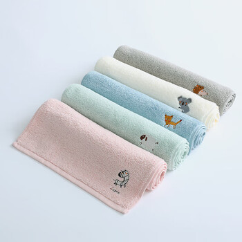 金号A类纯棉洗脸小毛巾儿童毛巾100%洗脸帕女士毛巾ins绣花5条装