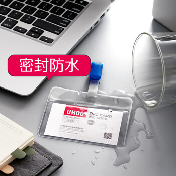 优和(UHOO)【超级爆款】防水PVC证件卡套 横式 透明 24个卡套 24个夹扣 工作牌员工牌胸卡 6655-2