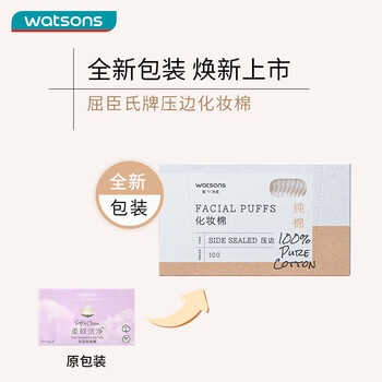 屈臣氏压边化妆棉100片X2盒 湿敷不掉絮一次性卸妆棉