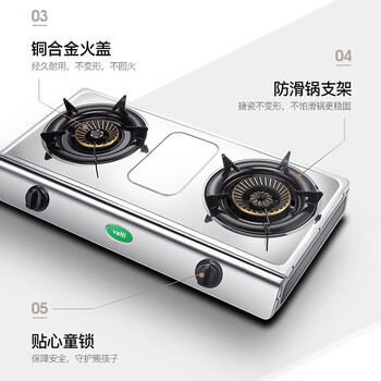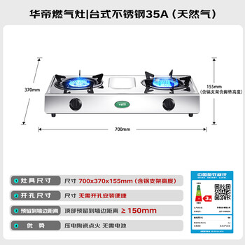 华帝燃气灶 家用台式 4.2kW易打理熄火保护 不锈钢面板双灶台灶具 JZT-i10035A【天然气产品】