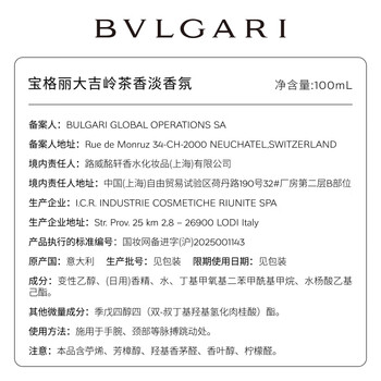 宝格丽大吉岭茶香淡香氛100ml*1;外包装*1