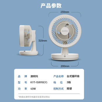 澳柯玛空气循环扇/风扇宿舍安静定时家用卧室床头轻音电风扇/台式小风扇办公室厨房/桌面小型台扇R910(Y)