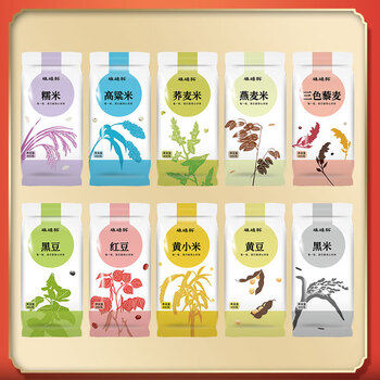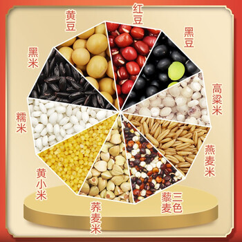 黑豆400g,黄豆400g,红豆400g,黄小米400g,黑米400g,糯米400g,高粱米400g,荞麦米400g,燕麦米400g,三色藜麦400g