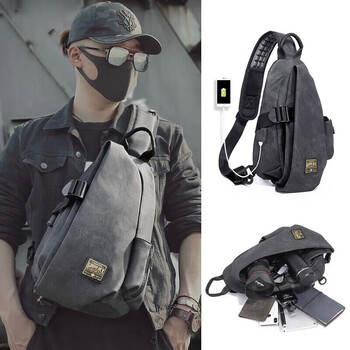 teemzone男士胸包休闲运动单肩包男潮流复古斜挎包旅行小背包生日礼物