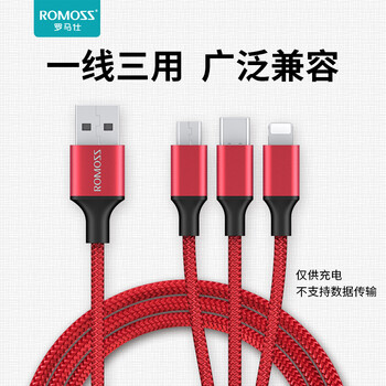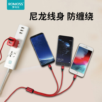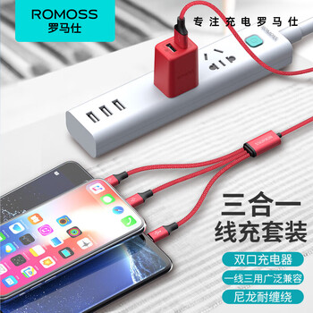 罗马仕充电器三合一套装5V2.1A插头USB插座多口苹果Type-c安卓手机充电线一拖三适用iPhone/华为oppo小米