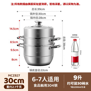 美厨(MAXCOOK)蒸锅 304不锈钢30CM三层蒸锅 加厚复底汤锅 燃气电磁炉通用