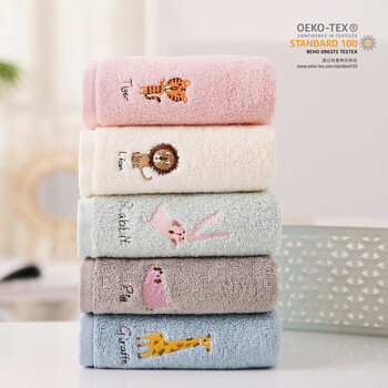 金号A类纯棉洗脸小毛巾儿童毛巾100%洗脸帕女士毛巾ins绣花5条装