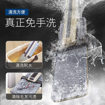 百家好世 平板拖把33cm4布免手洗家用脱水拖地神器尘推平拖