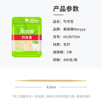 美丽雅牙签400支袋装竹制双头使用剔牙棒便携一次性家用水果小吃签