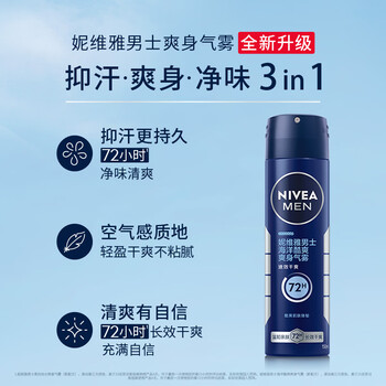 妮维雅(NIVEA)男士海洋酷爽爽身气雾150ml男士专用止汗露干爽腋下喷雾