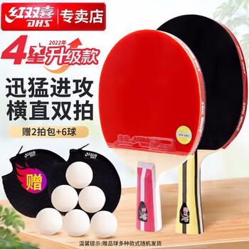 红双喜四星H4横直对拍乒乓球拍对拍狂飚3经典含乒乓球