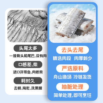 纯色本味冷冻舟山带鱼段(抽脏工艺)净重3斤烧烤地标产品刀鱼