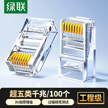 绿联超五类网线水晶头 超5类镀金工程级RJ45电脑千兆网络连接器 CAT5E非屏蔽8P8C水晶头100个 50246