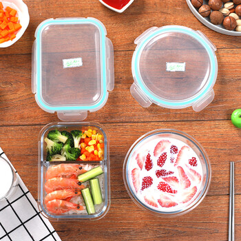 贝特阿斯(BestHA)饭盒 玻璃保鲜盒 饭盒微波炉耐热 上班带饭两件套带隔断RL2-09B