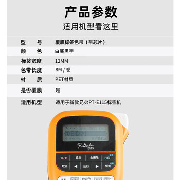 V4INK T2e-Z231 适用兄弟PT-E115标签纸打印机标签带白底黑字标签色带 12mm T2e-231升级版