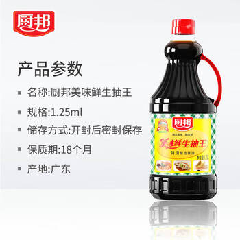 厨邦酱油 美味鲜生抽王 酱油 生抽【特级黄豆酱油】1.25L 酿造酱油