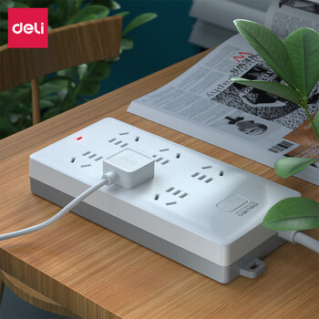 得力(deli)3C认证国标安全插座/插排/插线板/接线板/排插/拖线板 总控开关 儿童保护门 6组合孔2米 18260-02