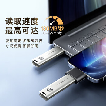 惠普(HP)64GB USB3.2 U盘 X796W 高速读写 多功能学习办公 电脑车载金属优盘