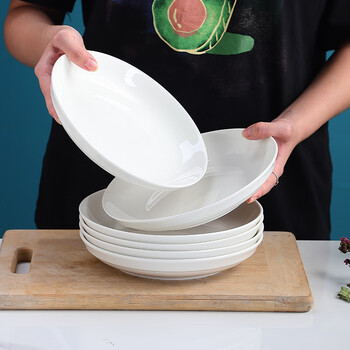 泰鑫兴4只装8英寸20.3厘米釉下彩陶瓷家用白瓷盘餐盘深盘汤盘菜盘