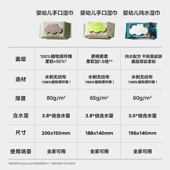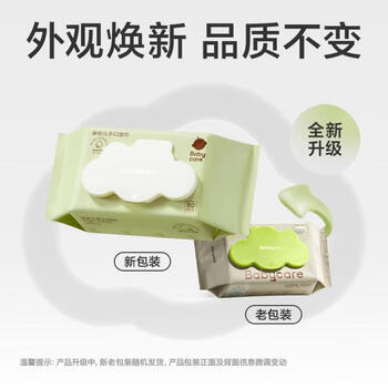 babycare婴儿手口湿巾新生儿湿纸巾加厚擦脸带盖3150绿盖湿巾80抽*10包
