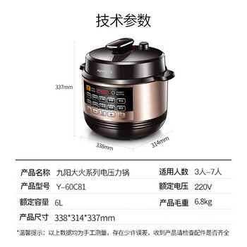 九阳(Joyoung)电压力锅1-6人可预约智能高压锅家用6L双胆电饭煲 Y-60C81