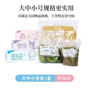 宜洁(yekee)三丽鸥联名密封袋保鲜袋大中小组合56只装幼儿园收纳袋JD-7166
