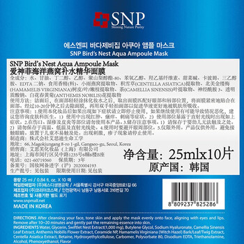 SNP海洋燕窝补水保湿安瓶精华面膜25ml*10片 韩国进口 敏肌用 送友人
