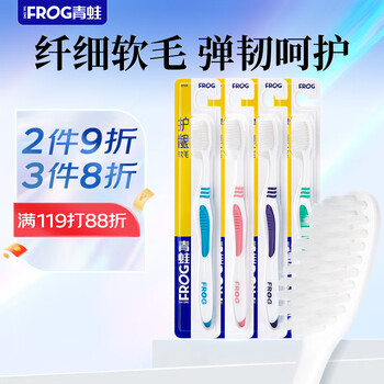 青蛙(FROG)套装系列成人牙刷4支装 柔丝软毛深层清洁家庭独立装