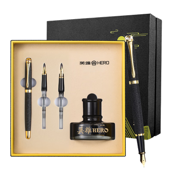 英雄(HERO)钢笔 1520绒砂多彩铱金/特细/美工男女款节日礼物墨水礼盒套装黑色