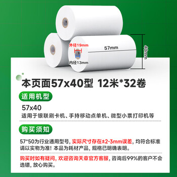 天章 (TANGO)57*40mm12米*32卷 新绿天章热敏收银纸 京东美团外卖餐饮小票纸 银联移动点单打印纸 适配58mm机器