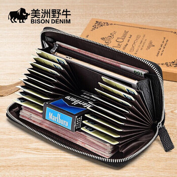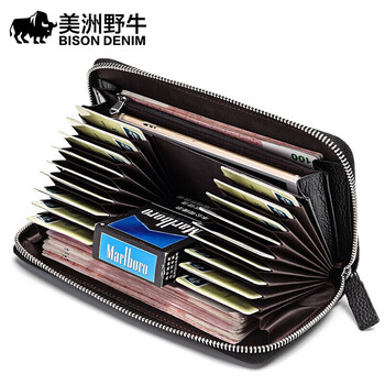 美洲野牛男士钱包长款头层牛皮商务手拿包卡包青年钱夹生日礼物送男友