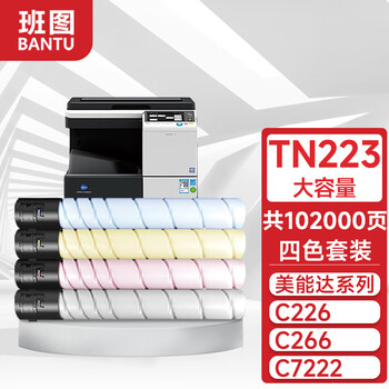 班图适用柯尼卡美能达c226碳粉tn223粉盒bizhub C266 tn224 C7222 C256墨粉盒 震旦adc225墨盒 四色套装大容
