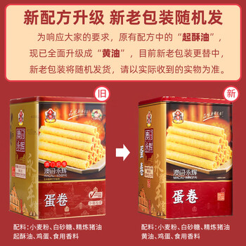 永辉澳门鸡蛋卷经典原味938g礼盒 年货送礼休闲零食饼干糕点澳门特产