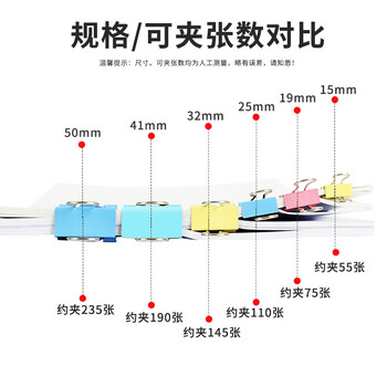 长尾夹燕尾夹子组合装*63个(19MM*35只+25MM*18只+32MM*10只) 彩色金属