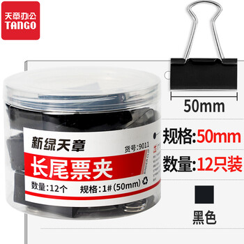 天章(TANGO)长尾夹燕尾夹子凤尾夹票夹反尾夹票据夹子 1#50MM黑色金属 12个/筒 办公用品