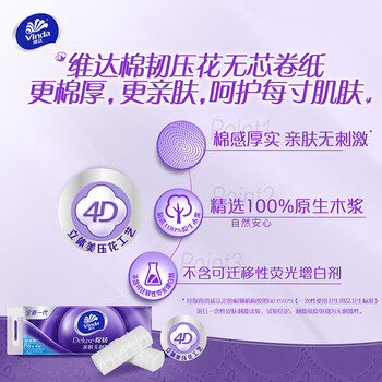 维达(Vinda)无芯卷纸30卷立体美4层装纸巾卫生纸(整箱销售 母婴可用)