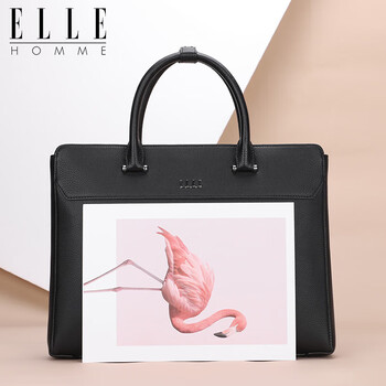 ELLE HOMME 男士商务公文包 手提公务包横款头层牛皮电脑包大容量时尚男包EA888200411黑色