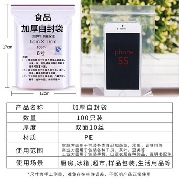 登比加厚自封袋【双面10丝】6号12*17cm/100只*1