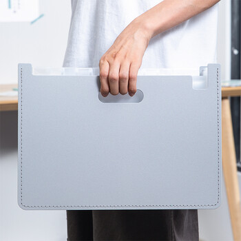 得力(deli)13格A4立式大容量风琴包 多层可伸缩学生办公文件框收纳夹 小学初中高中办公文件保护 63951浅灰色