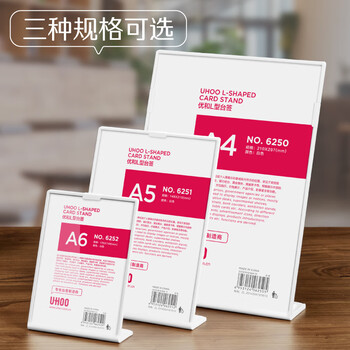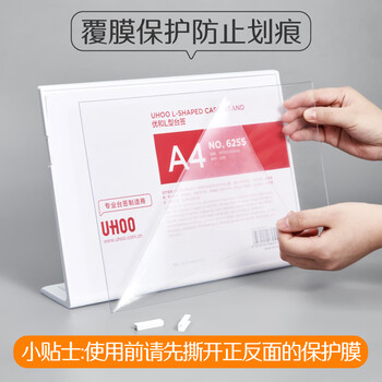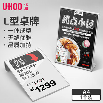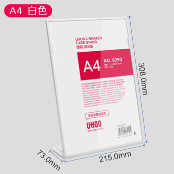 优和(UHOO)桌牌L型亚克力台卡白色透明1个装210mm*297mm A4竖款立牌架展示牌桌牌餐牌桌水单价目表会议卡6250