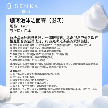 珊珂滋润泡沫洁面膏120g日本进口洗面奶男女士含胶原蛋白保湿洁面乳