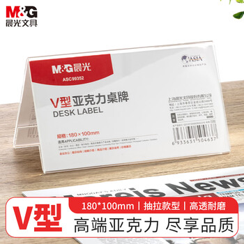 晨光(M&G)V型台卡 亚克力桌牌展示牌席卡壳立牌180*100mm 会议席位卡 座位牌广告展示牌 单个装ASC99352
