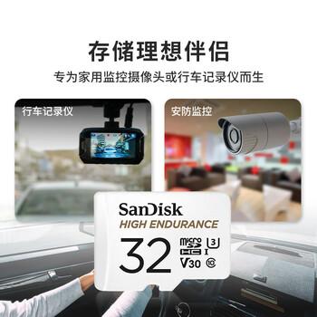 闪迪(SanDisk)32GB TF(MicroSD)4K内存卡 行车记录仪 监控摄像头专用 循环录制2,500小时 高耐用存储卡