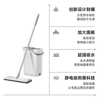 五月花平板拖把33CM杆长127CM2配布刮刮桶免手洗家用懒人吸水墩布拖地