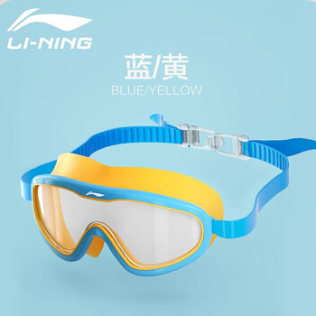 李宁儿童泳镜高清防雾防水大框游泳潜水眼镜男女童泳镜游泳装备LSJP319-2蓝色