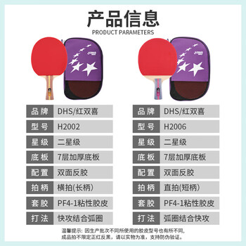 红双喜(DHS)乒乓球拍二星级训练比赛横直对拍附拍包