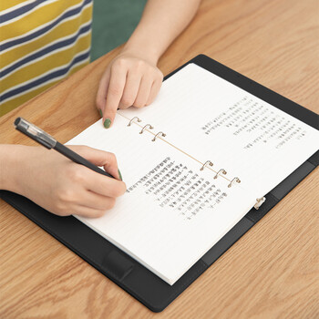 得力(deli)(deli)25K100张活页笔记本子文具 莫兰迪色系商务记事本皮面本办公用品210mm*145mm 黑色22287