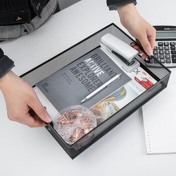 得力(deli)金属商务方形文件篮 镂空网材文件桌面收纳文件架/资料架/文件篮 财务凭证发票单据发票 黑色79080