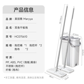 美丽雅带桶平板拖把38cm2大拖把2布家用一拖净免手洗刮水一体三合一拖布
